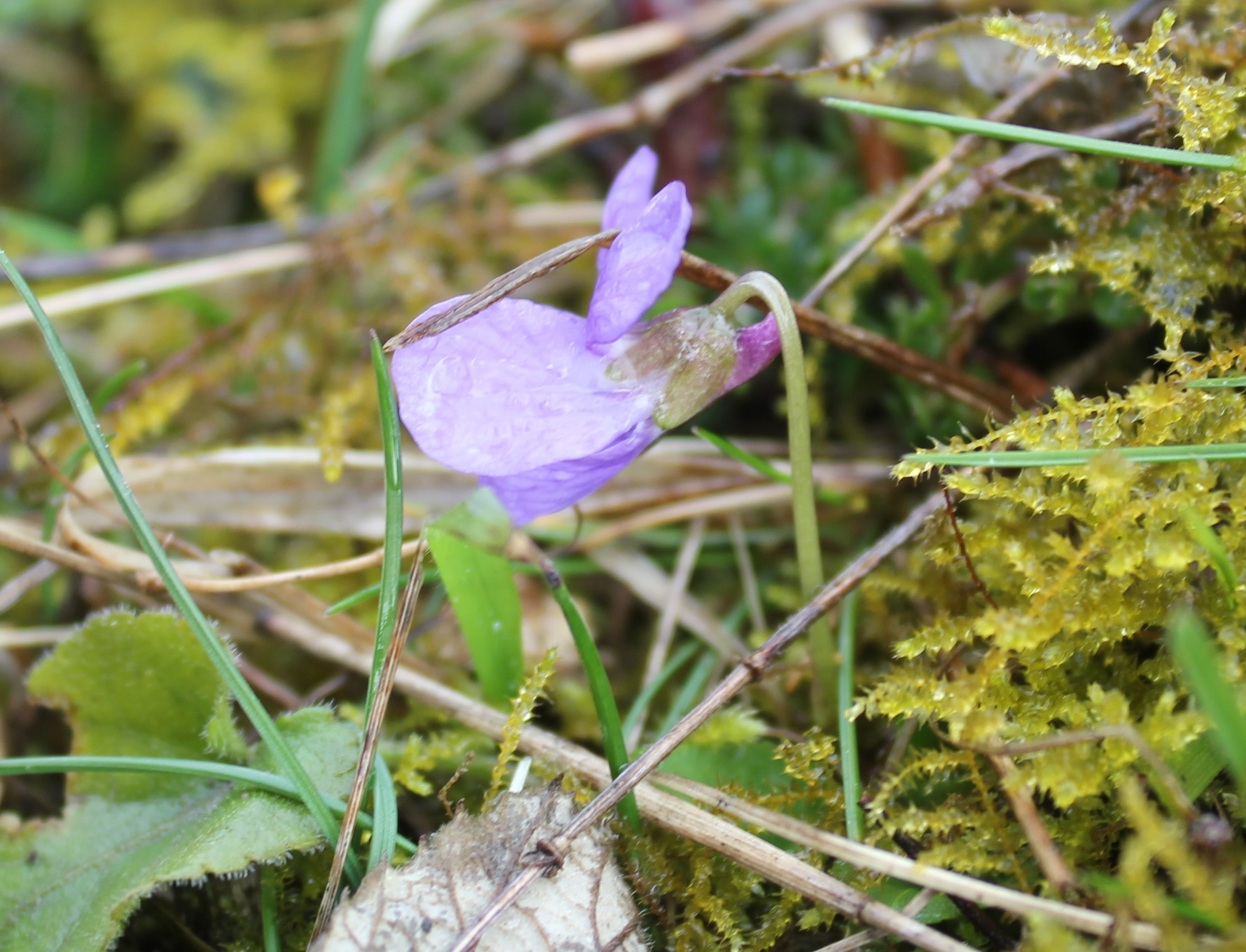Picking my way carefully along the sticky track I was rewarded by this Sweet Violet (distinguished from Hairy and Dog Violets by it’s rounded rather than pointed sepals) before I settled down for some serious leaf identification.