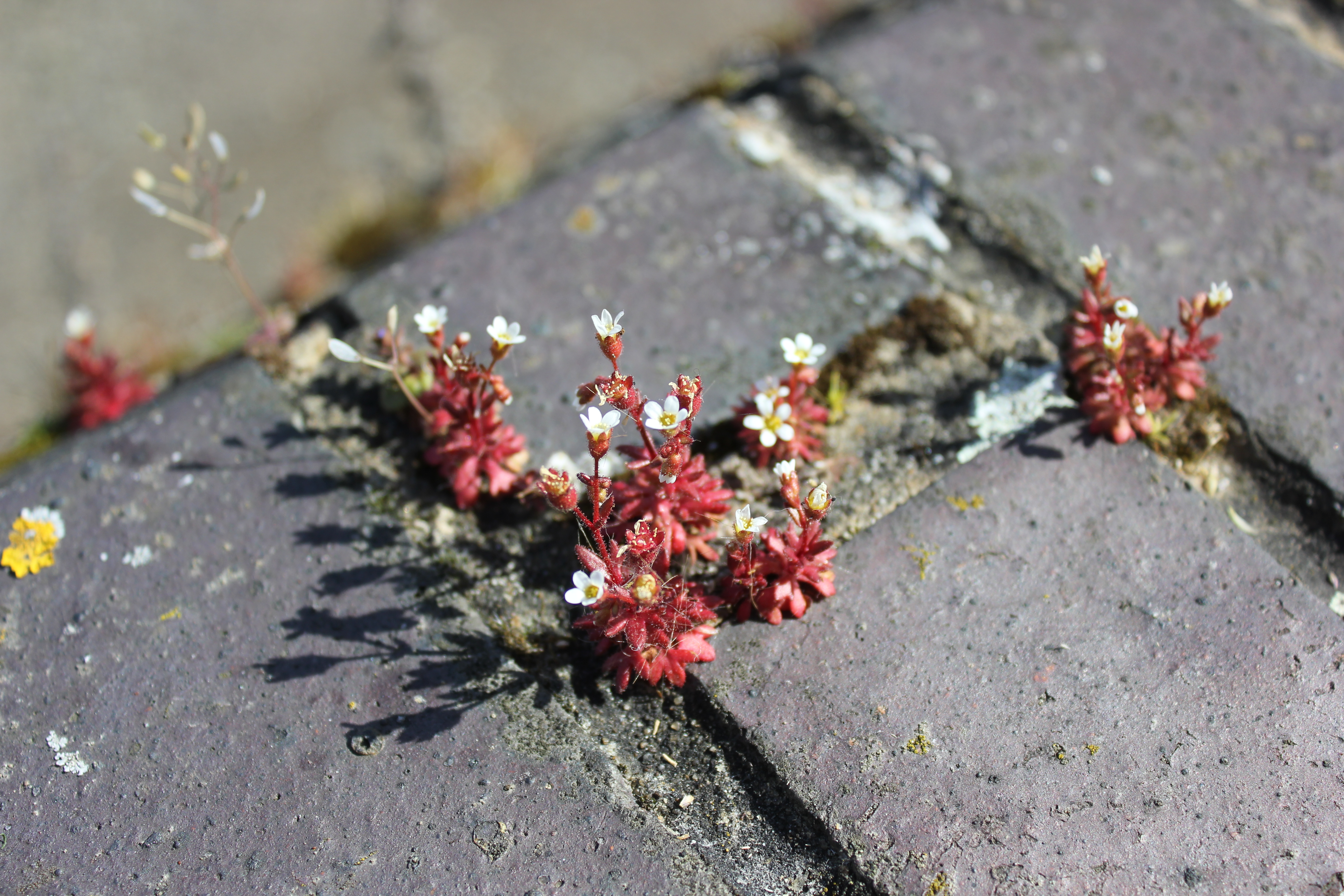 Further along the Thames Path I notice a haze of red on the sloping bricks of the river wall and lean over for a closer look. I’ve never seen this plant before but I know instantly it’s Rue-leaved Saxifrage and it’s in flower too. Over the last few months, some of botany acquaintances have been posting pictures of the leaves of this plant from sites around Lambeth. I managed to resist the urge to rush out and plant-twitch as I was rather hoping to find some for myself in Southwark. It ticks all the boxes being tiny, a gorgeous colour and with achingly beautiful flowers.