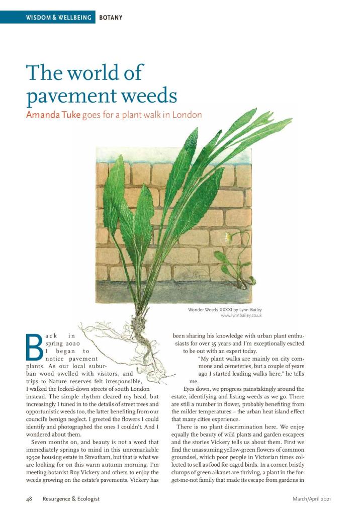 If you follow this blog, you’ll know that I spend a lot of time getting excited about pavement plants in suburban south London. Earlier this year, I wrote this article about urban plant hunting for Resurgence & Ecologist magazine.