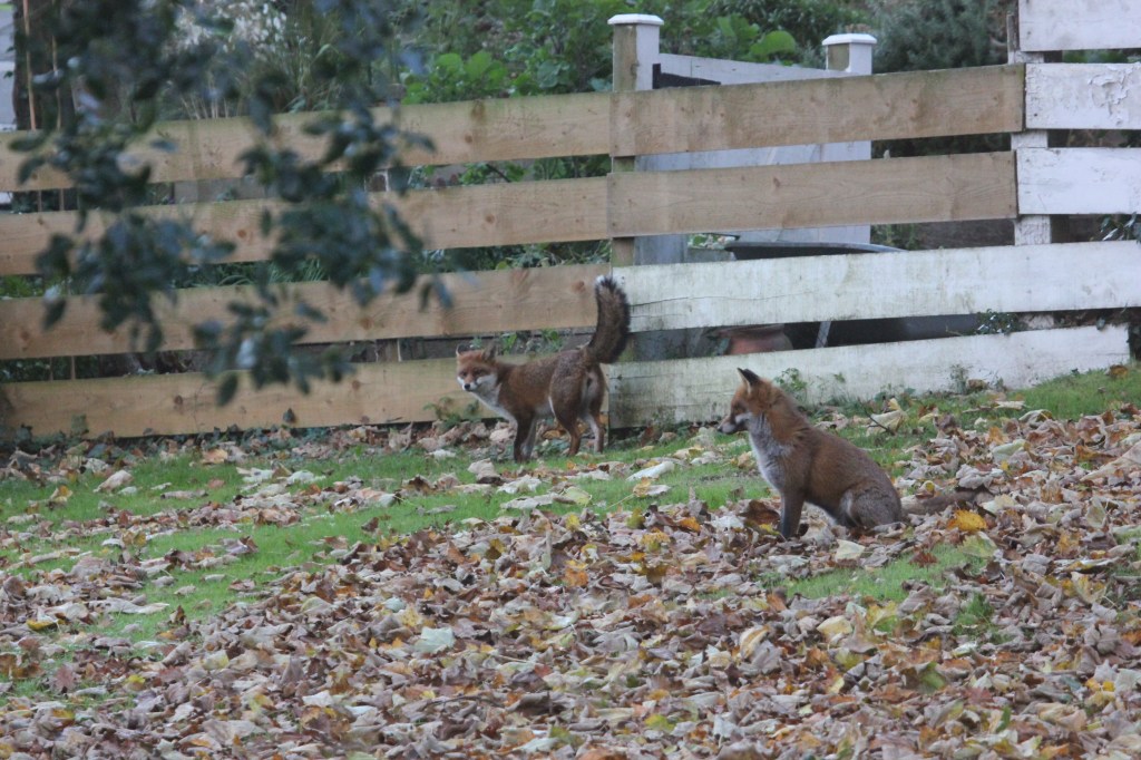 Suburban high noon. Grass alleyway between garden fences. At one end, a fox. At the other, two crows forage all casual-like, their nest in a sycamore overhead. Fox inches forward. Stops. Starts. Watched every step. Nah, not worth it mate. He turns and lopes away. I breathe out gently.