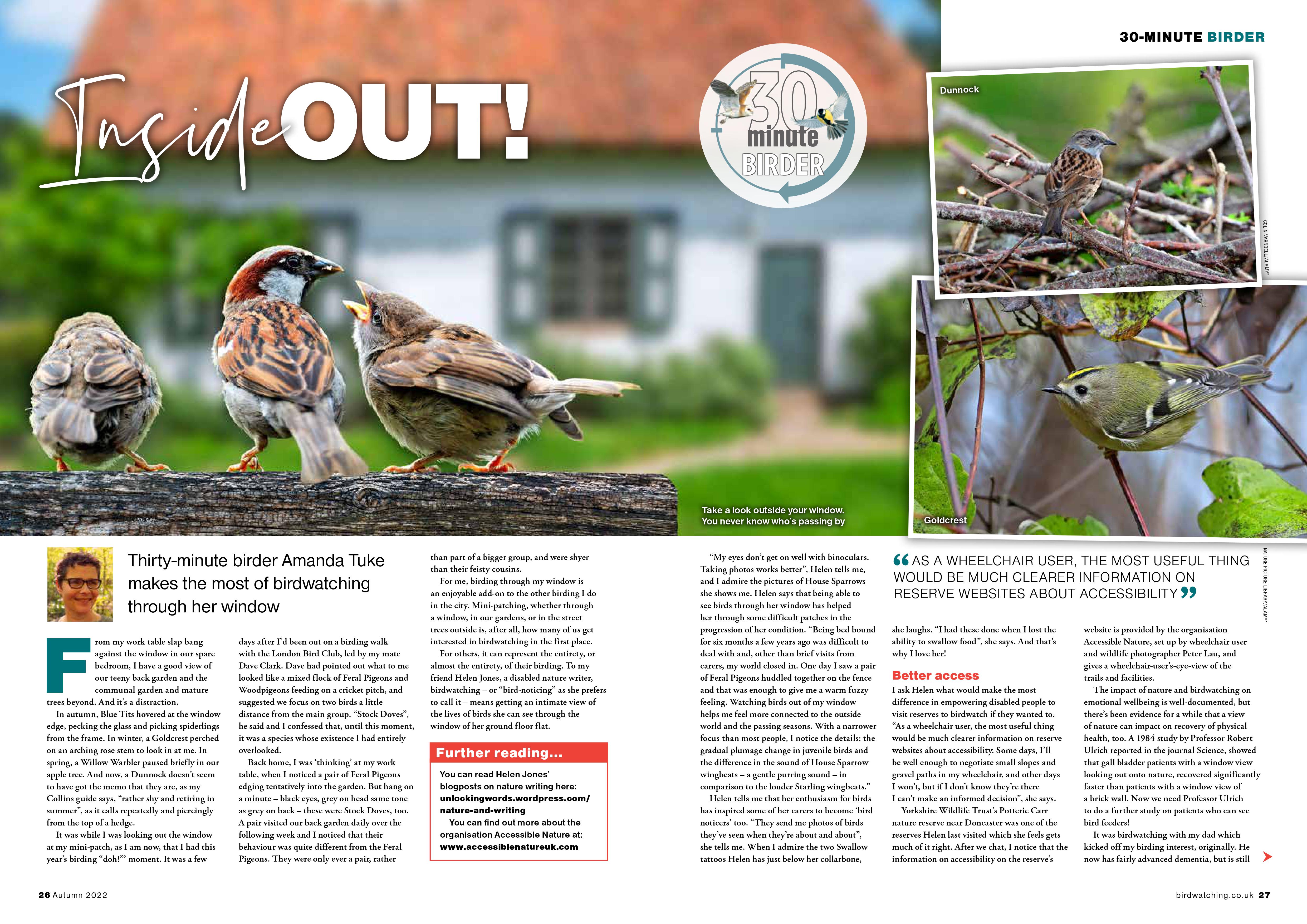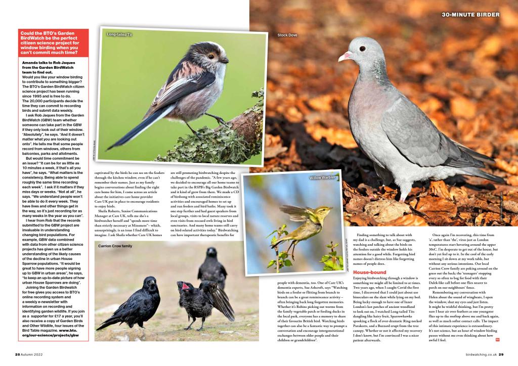 I often meet inspiring writers but Helen Jones is way up there. This month’s feature in Bird Watching Magazine, about birdwatching through the window was the perfect opportunity to share her writing with the magazine’s readers.