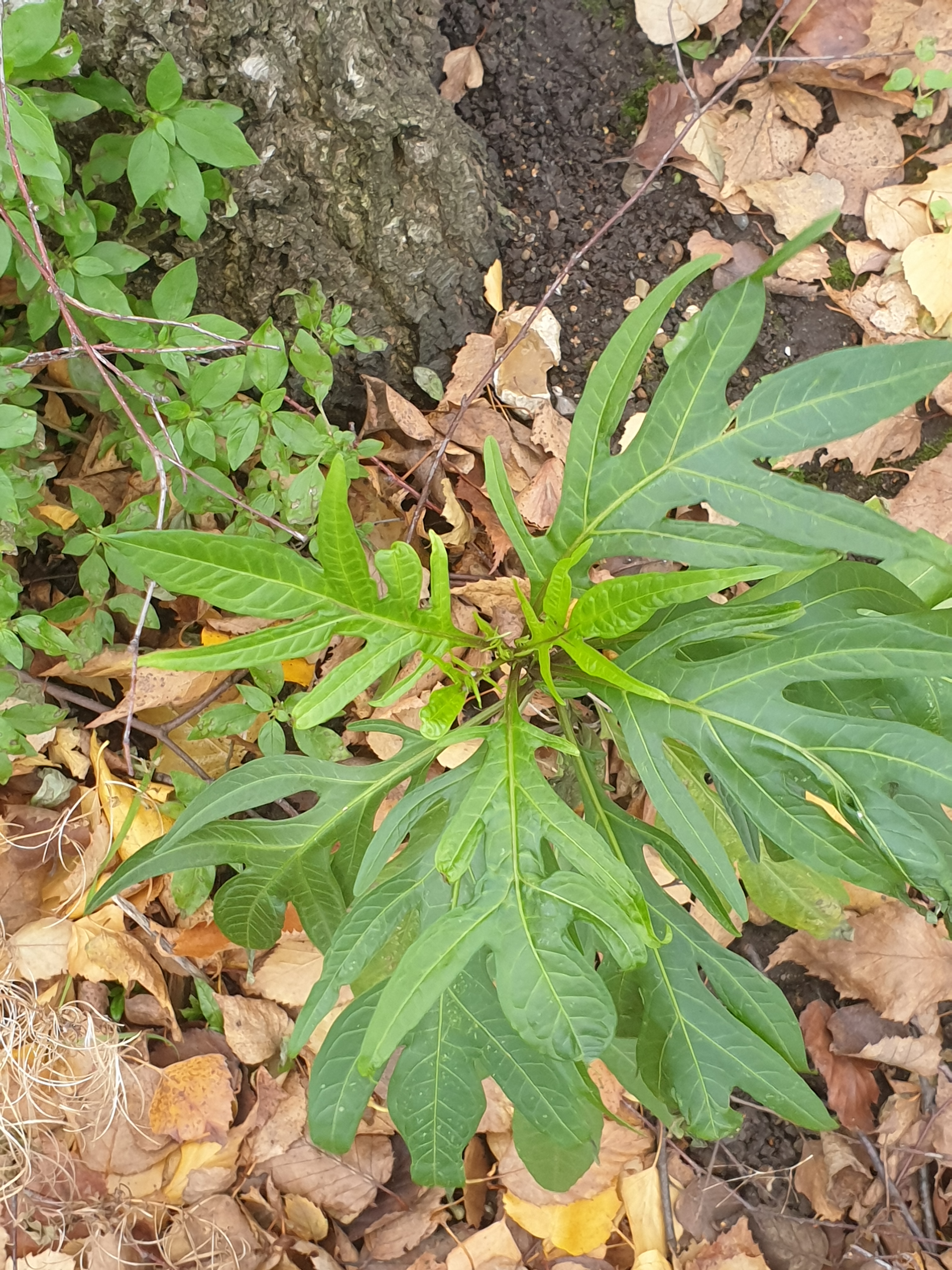 In front of Tate Modern the stand of birch trees hasn’t been too thoroughly weeded and we spot Tall Nightshade, Fern-grass (see pictures) and another grass, Common Bent. There’s another representative of the Potato family (like the Tall Nightshade) growing beneath the birches, which Than tells us is Kangaroo-apple (and Google Lens agrees with him), although it’s not in flower.