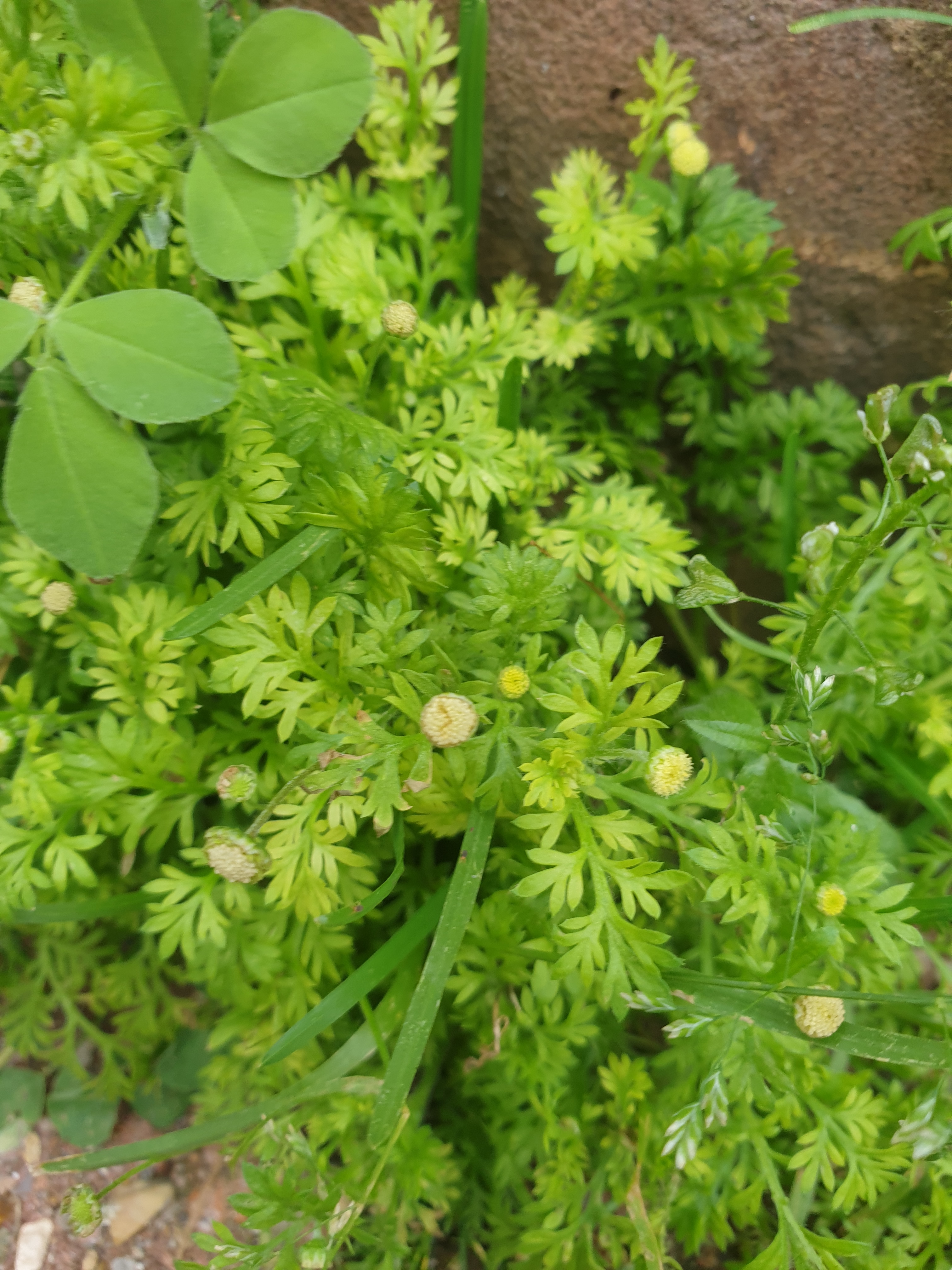 I get very excited when I find a lone sprig of Jersey Cudweed on the river wall as it’s my favourite pavement plant. I tell the others it’s currently a red-listed plant, meaning you are breaking the law if you weed it out, despite being on the increase in London. As we reach Bermondsey, I point out on the river wall some little rosettes of Rue-leaved Saxifrage not yet flowering, and then we find lots of Annual Buttonweed – a garden escapee – some Sun Spurge and Small Nettle which all do have flowers.