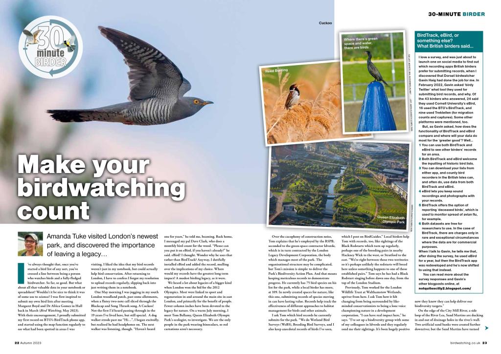 …in which I visit Queen Elizabeth Olympic Park for a tour with Tom Bellamy, park ecologist, and investigate options for uploading bird records.