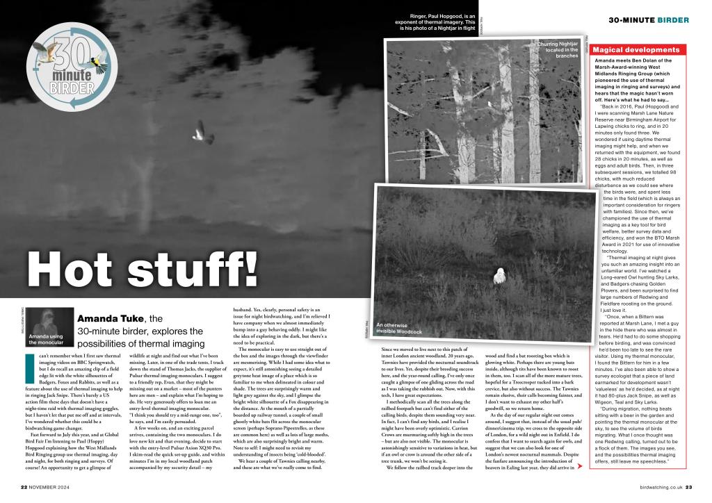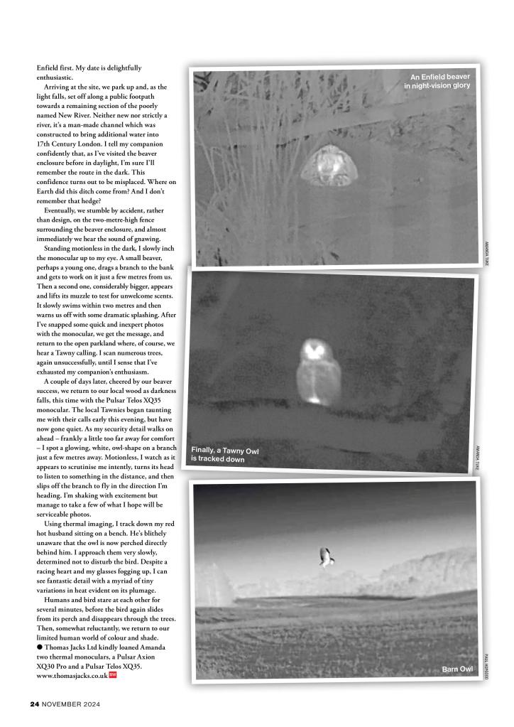 It’s true you don’t need much equipment for birding – a decent pair of binoculars is enough for most people – but when I was loaned a couple of thermal monoculars to try out for my November column, a previously unseen world was revealed.