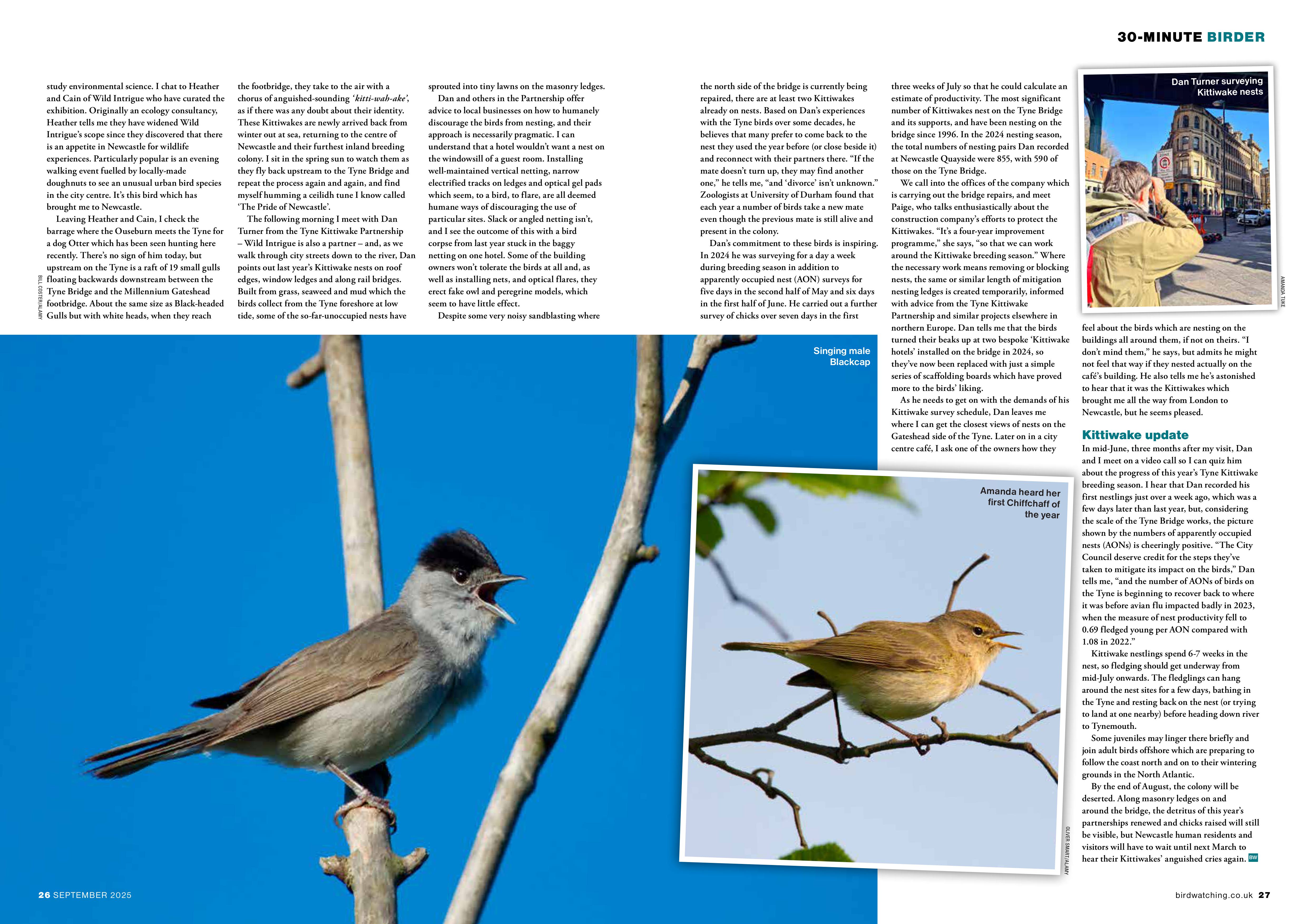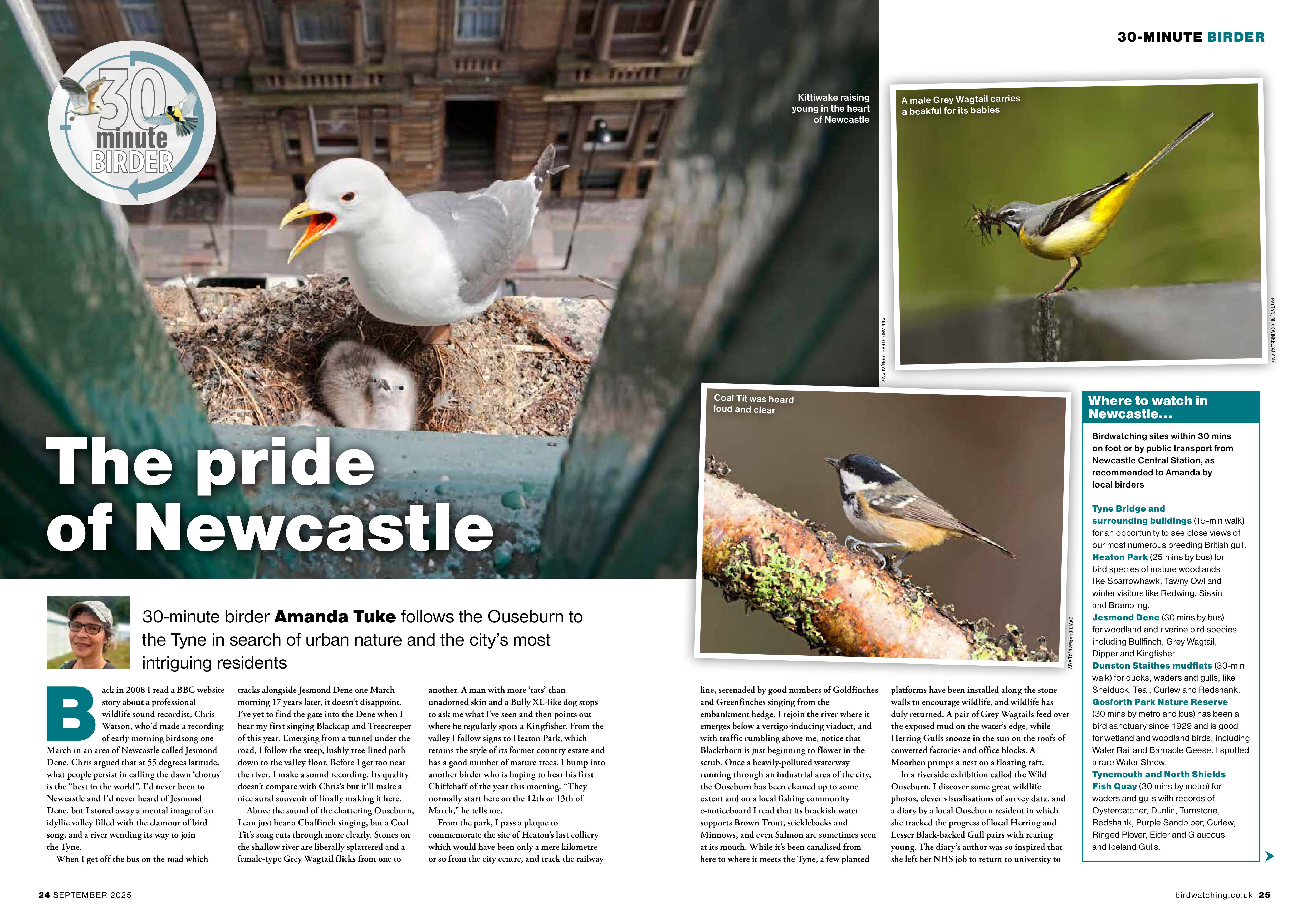 As summer comes to an end and the excitement of autumn birding begins, my trip to Newcastle back in March seems an age away. In my September column, I tell the story of welcoming one of the coolest urban birds – Kittiwakes – back to their most inland breeding site on and around the Tyne Bridge and visiting other urban birding sites in the city recommended by local birders.