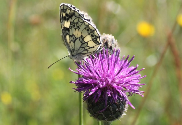 Steep steps lead up to a glorious chalk meadow and thankfully, given how hot it is, there are lots of shady patches round the edges. I spot common and greater knapweed, agrimony, yellow rattle, hedge and lady’s bedstraw, quaking grass, perforate St John’s wort, kidney vetch, pyramidal orchid and goatsbeard… and hundreds of marbled white […]